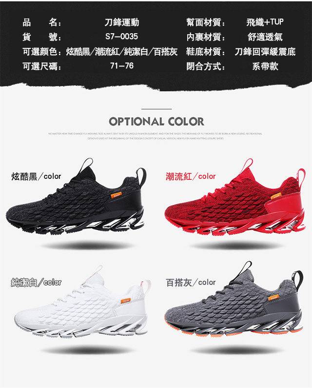 5分鐘前【新款刀鋒減震運動鞋】一雙鞋竟裝上28片“刀鋒”彈簧?!穿上暴力跳躍!鞋子再也不悶腳!時尚潮流任我行!破盤下殺三天,售完無補 - 【超帥氣!刀鋒魚鱗運動鞋!】一雙免運 NT$1198